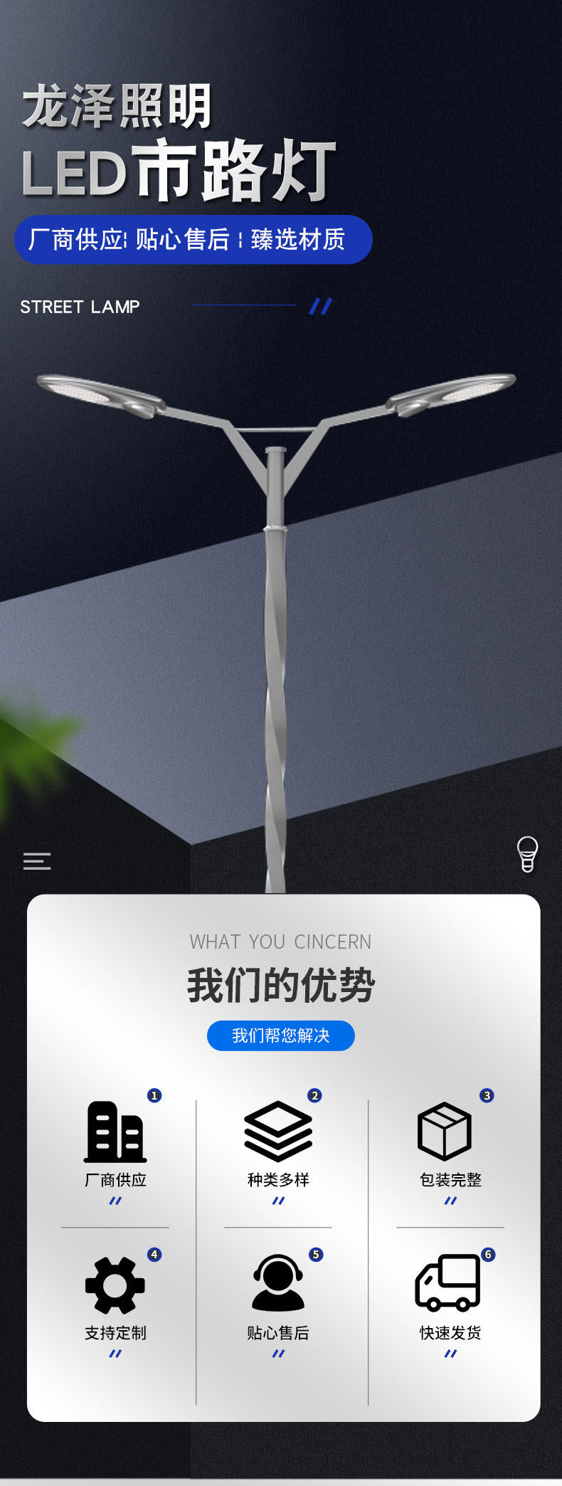 歡迎訪問江蘇龍澤照明-太陽能路燈-led市政路燈-高桿燈庭院燈公司網(wǎng)站,產(chǎn)品優(yōu)良,價(jià)格公道,歡迎選購!